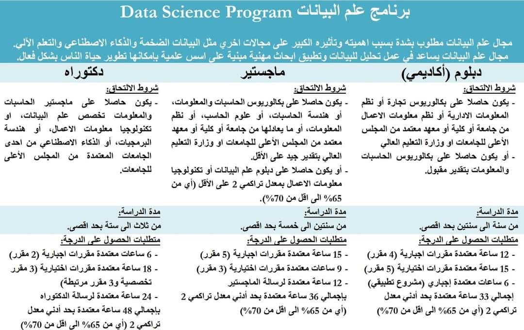 البرامج المتاحه للدبلومات